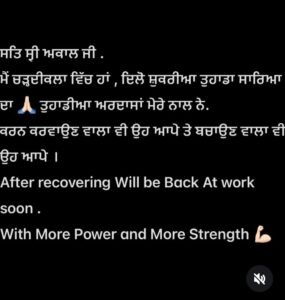 ਹੁਣ ਜੈ ਰੰਧਾਵਾ ਨੇ ਸੋਸ਼ਲ ਮੀਡੀਆ ‘ਤੇ ਪੋਸਟ ਸਾਂਝੀ ਕਰਕੇ ਆਪਣੀ ਸਿਹਤ ਵਿੱਚ ਸੁਧਾਰ ਦੀ ਜਾਣਕਾਰੀ ਦਿੱਤੀ ਹੈ ਅਤੇ ਆਪਣੇ ਦਰਸ਼ਕਾਂ ਤੇ ਪ੍ਰਸ਼ੰਸਕਾਂ ਦਾ ਧੰਨਵਾਦ ਕੀਤਾ ਹੈ।